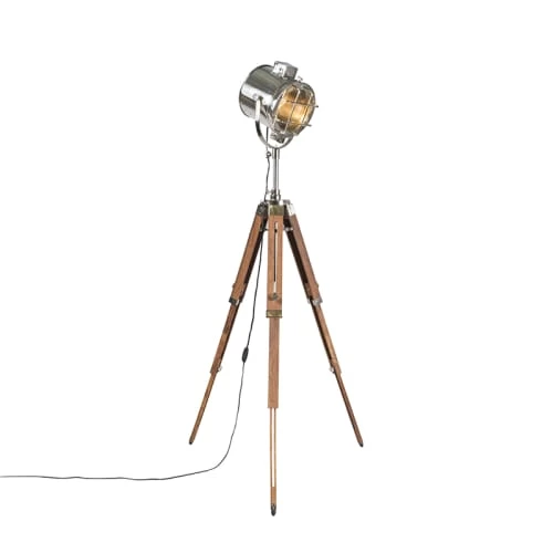 Maisons Du Monde Lampadaires Lampadaire En Bois De Manguier Et Abat-jour En Lin Et Rotin Beige H166