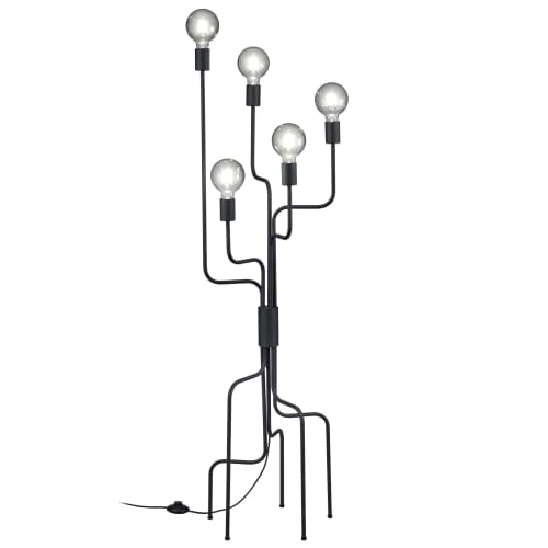Maisons Du Monde Lampadaires Lampadaire En Bois Noir, Gris Et Beige, Abat-jour En Lin H154