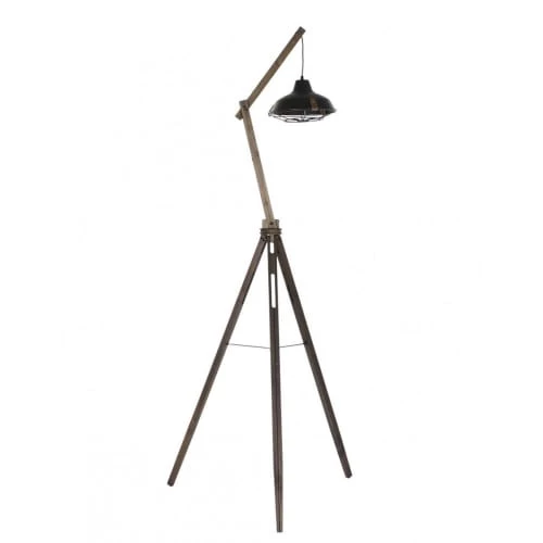 Maisons Du Monde Lampadaires Lampadaire En Bois Noir, Gris Et Beige, Abat-jour En Lin H154
