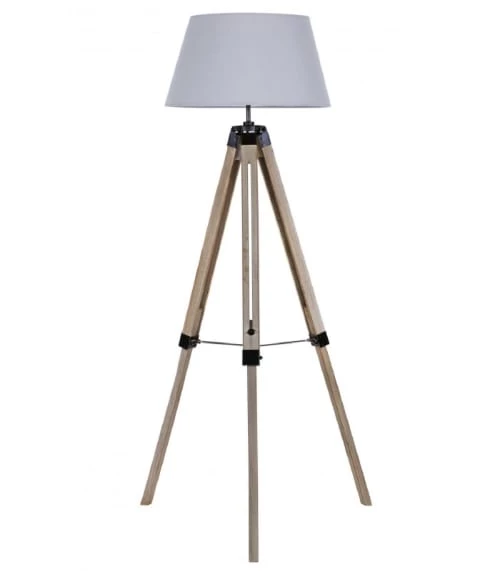 Maisons Du Monde Lampadaires Lampadaire En Bois D’ailante Beige Et Abat-jour En Tissu Blanc H169