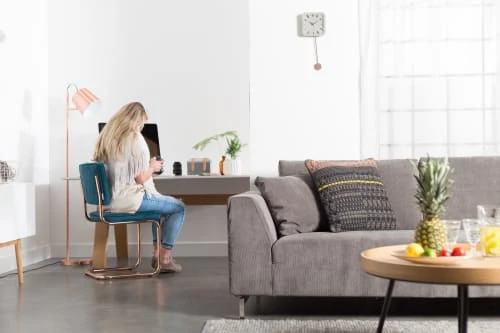 Finition cuivre texturée. Câble en métal avec interrupteur marche / arrêt au pied.