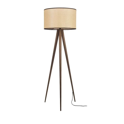 Maisons Du Monde Lampadaires Lampadaire En Bois De Manguier Et Abat-jour En Lin Et Rotin Beige H166