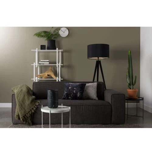 Maisons Du Monde Lampadaires Lampadaire En Métal Doré Et Abat-jour En Coton Bleu Nuit Recyclé H155